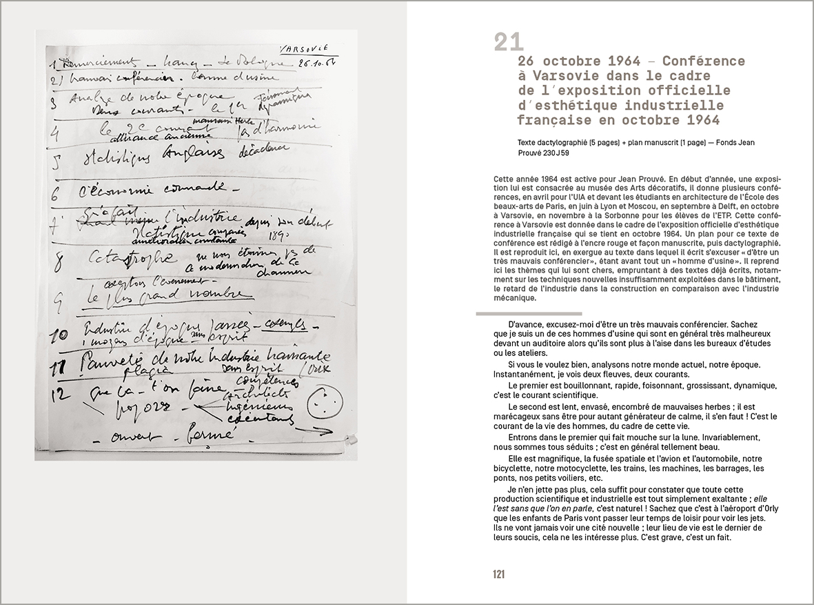 À travers des textes rédigés entre 1944 et 1982 — conférences, articles, lettres, hommages, prises de position parfois indignées — se révèle une voix singulière, libre, exigeante. Celle d’un constructeur qui refusait les étiquettes, se méfiait du mot « designer », se disait simplement « tortilleur de tôle », parfois industriel, constructeur ou entrepreneur, mais pas architecte ou ingénieur. Il rejetait les querelles de chapelle : « Architecte ? Ingénieur ?… Il s’agit de bâtir. »