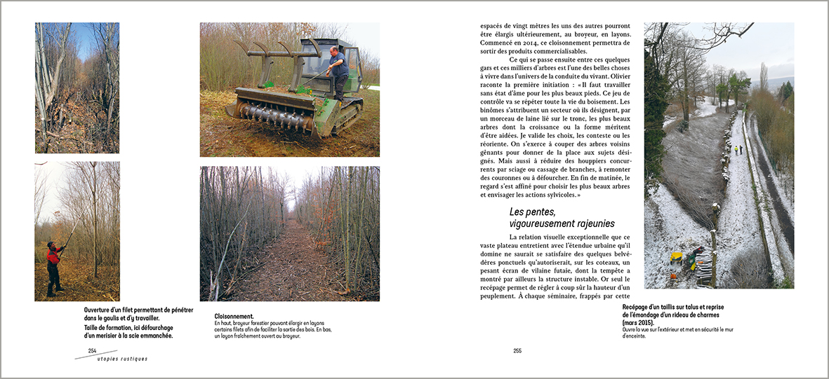 Enfin « Le verger (fructifier) » regroupe les récits de projets de maturation, certains initiés précédemment, où s’inventent des exercices originaux du métier, des méthodes et des manières de durer… en se transformant. Ces évolutions impliquent une diversité croissante de partenaires qui continuent à appeler et apprécier les interventions des professionnels du paysage.
